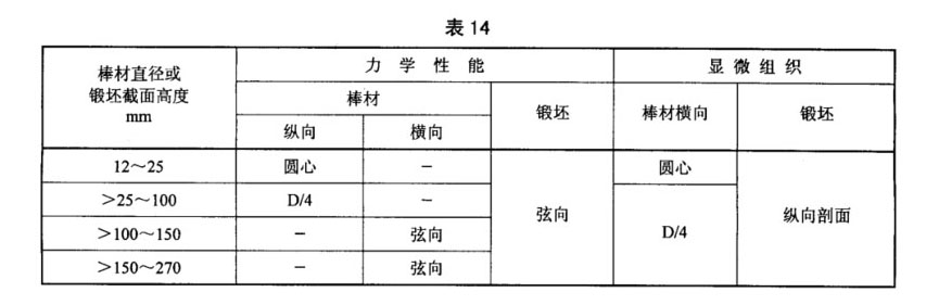 當用同一鑄錠采用相近工藝,同時生產幾種規格相近的鍛坯時,訂購方同意并在合同中注明時,允許用最大規格鍛坯的性能和組織的檢驗結果代表其他規格鍛坯的檢驗。